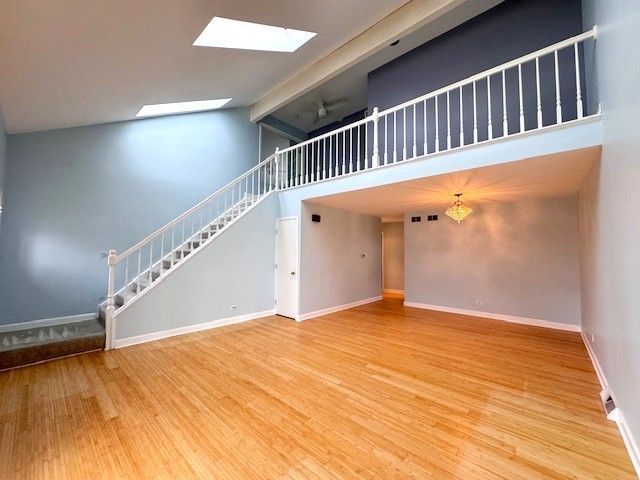 This spacious townhome is nestled in a serene, wooded neighborhood. The bright living and dining rooms feature hardwood flooring, a cathedral ceiling, and skylights that fill the space with natural light. The large eat-in kitchen boasts updated cabinets and stainless steel appliances. The first-floor family room offers a cozy stone-front fireplace and sliding glass doors leading to a lovely deck. Additional conveniences include first-floor laundry. The second floor features all-new carpeting, a generous master suite with a separate sitting area, and a newly renovated master bath with an oversized walk-in shower. The finished basement adds extra living space with a family room, a third bedroom, and plenty of storage. Enjoy the surrounding miles of biking and hiking trails, forest preserves, and parks, all while being conveniently close to shopping, major highways, and the train. Located in the highly acclaimed Naperville School District 203--Ranch View Elementary, Kennedy Junior High and Naperville North High School. This move-in-ready home is sure to impress.